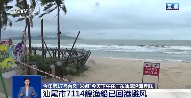 资料来源:CCTV新闻客户记者从Shanwei海事部门,广东省7,114艘渔船在Shanwei,该市返回港口采用风。当前情况是什么?让我们看一下新闻工作者的介绍。总站记者Cheng Yingjie:我目前的位置是Shanwei City的Jinchengwan旅游胜地。今天下午2:50,今年17号风暴,“ Mina”到达了Shanwei City。当降落在海岸上时,中间到达10级的最大风强度。当前的风和波仍然很重。尽管雨水下降,但我觉得风听起来很大。昨天,Shanwei做了所有准备台风“ Mina”的准备工作。城市中的所有四个旅游景点都关闭了。强风和海浪以及体验的服务是封闭的水体验。此外,从该省的第187名乘客路线开始,暂停了12个香港和澳门路线。经历。昨天(18日)中午,山威市有7,114艘渔船返回港口采取风; 20名人员组成的31个海分和165名钓鱼人员逃到海岸,以避免风险。在过去的24小时内,该省的平均降雨量为14.6毫米,chanon,Chanon,Shanto的Liangying Town的最高雨季为225.0毫米。由于风暴的随后影响,气象部门还预测,从19日到20日,将有一个大雨到大雨和当地的严重暴风雨的过程。我们记得公民和游客一定要为各种预防急救空气做准备。同时,我们还将继续关注今年“ Mina” 17号风暴的最新消息。