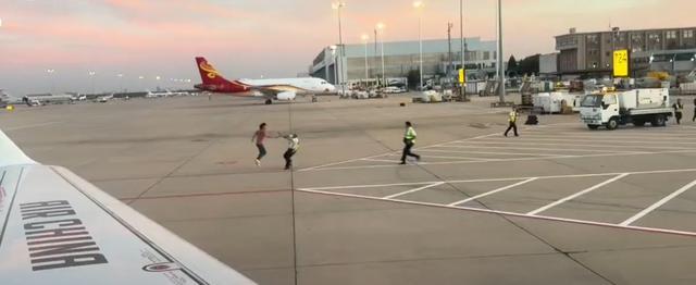 该男子在登上飞机之前在飞机上跑来跑去,并由